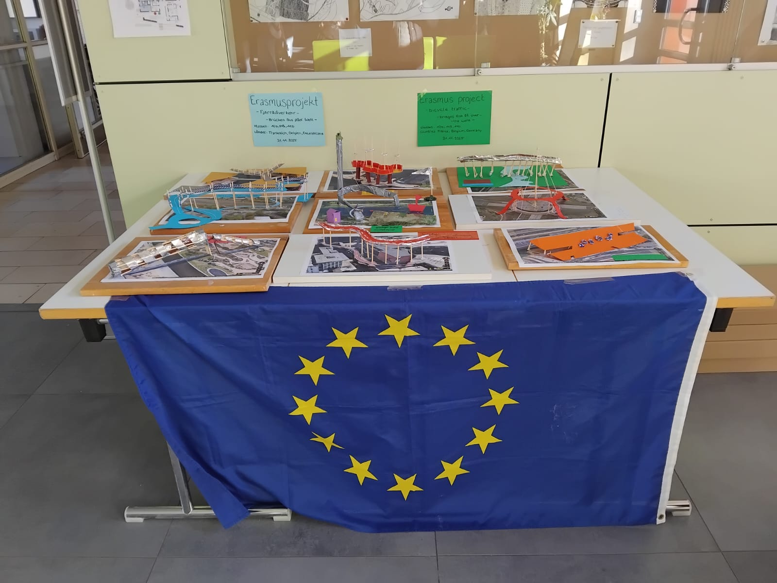 - Model construction project in groups of four or three international students from pictures showing bike bridges around the world, ensued : 9 models were then put on display at the entrance of the school.